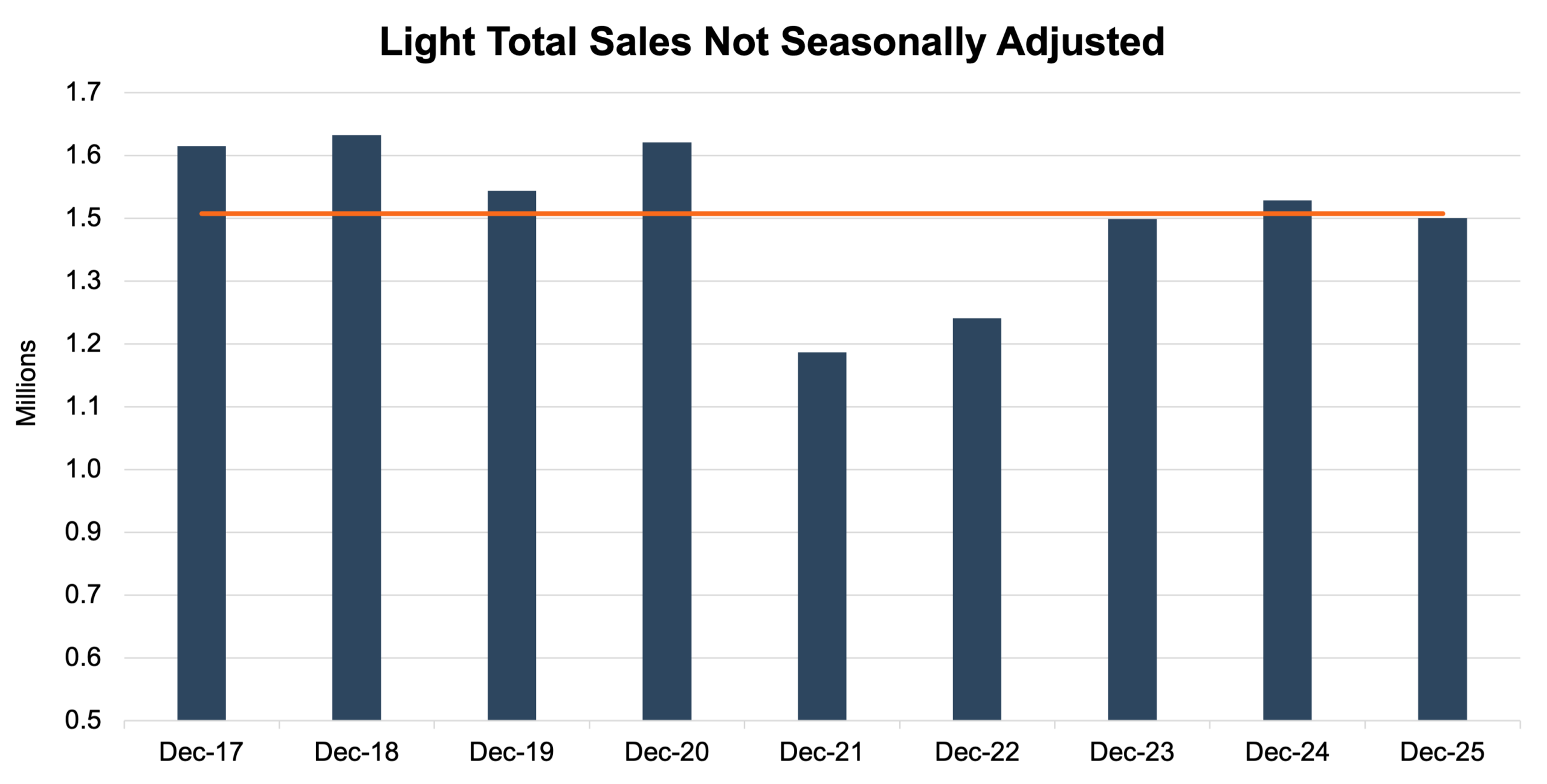 After two months of depressed sales, December delivered modest sequential improvement on a SAAR basis and full-year 2025 volumes successfully surpassed the 16 million threshold, marking an important milestone for the industry.