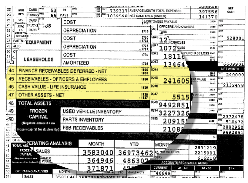 Occasionally, auto dealers loan money into the dealership with no intention of ever repaying those funds, and dealers sometimes misplace or disguise items on the dealer financial statement to overstate working capital. Valuation analysts have to ask about these items specifically during their management interviews with the dealer principal or controller to know if adjustments to the dealer financial statement are warranted.