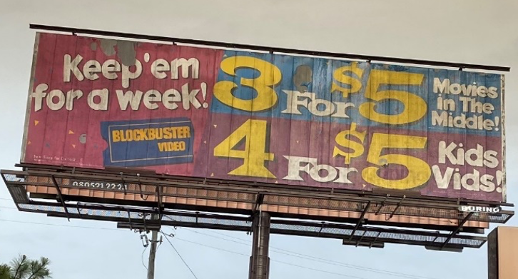 While making a trip to the grocery this past week, I came across a billboard that caught my eye, but not for the right reasons. An advertisement had been recently removed, exposing a much older advertisement beneath. It was a 3-videos-for-$5 ad from Blockbuster. It provoked an instant sense of nostalgia as I remembered going with my family to pick out movies on Friday nights. Unfortunately, this old ad now serves as a cautionary tale of what can happen to businesses that aren’t able to keep up with ever-evolving consumer demands.