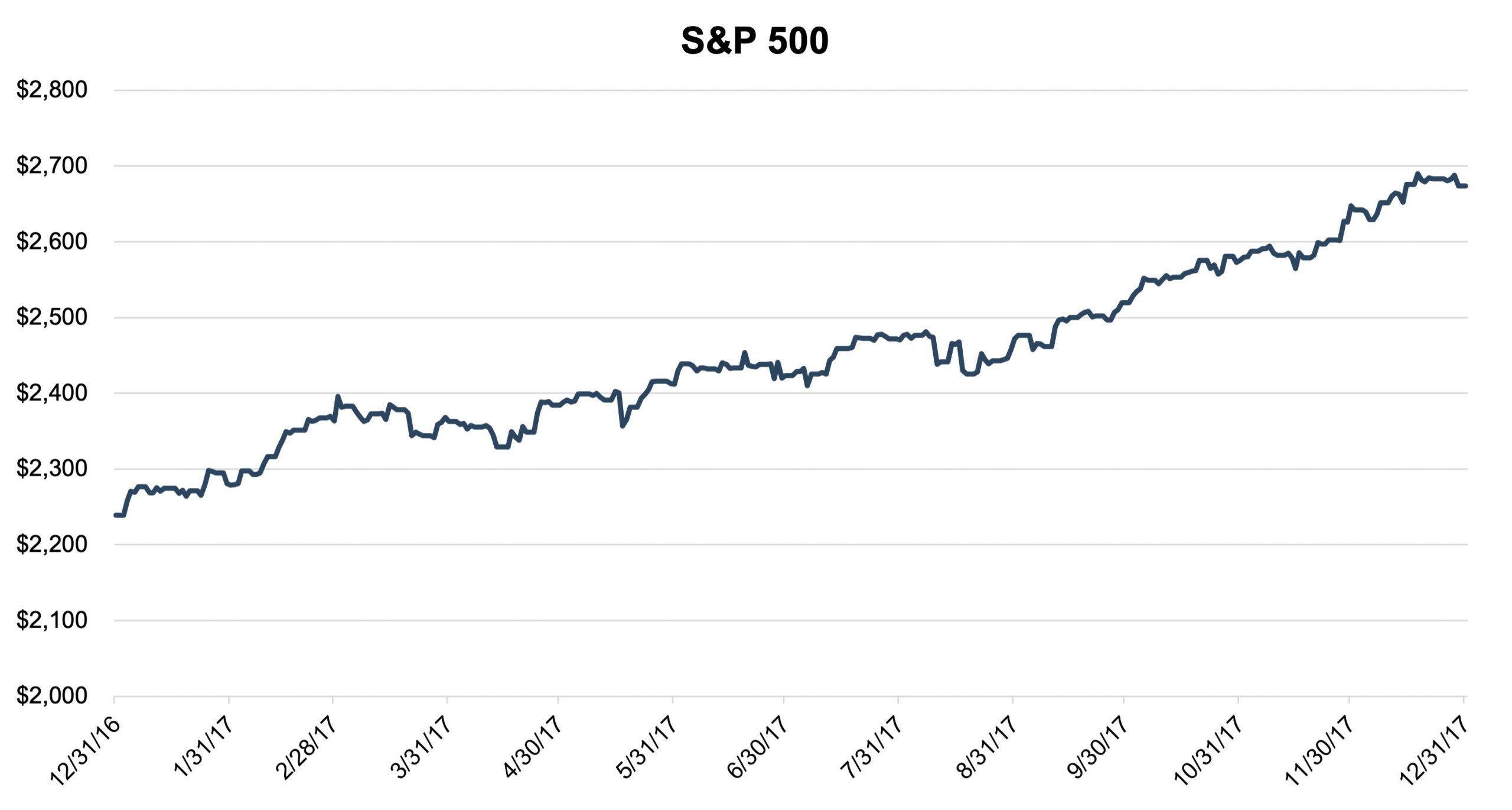 On a statutory basis, a dealer structured as a traditional C corporation making $1 million in pre-tax earnings went from net income of $650,000 to $790,000, or an increase in value of 21.5% assuming no change in the P/E multiple. While this generally comports with the returns of the S&P 500 in 2017 (which increased 19.4%), this increase happened gradually over time. While there are many other contributing factors, it is evident in the chart below that the market likely priced in any favorable tax changes gradually throughout the year.
