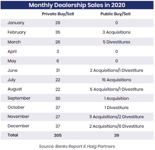 Without any context on the reported multiples (the red and green lines above), one might think that values were stagnant in Q4. However, the multiples reported by Haig are now being applied to 3-year average earnings instead of 2019 earnings. For the average luxury dealership, 2019 pre-tax earnings were $2.2 million, which were below 2018. Factoring in the higher earnings of $3.4 million in 2020, the 3-year average is $2.6 million. So, as seen on the graph, a dealership on the top end of the range saw their value increase by approximately $4 million as higher earnings are applied to multiples that held firm.