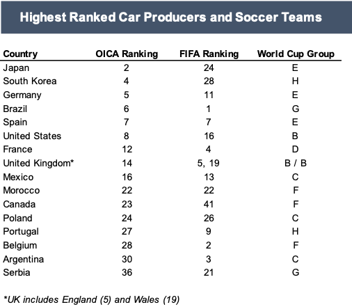 In the spirit of the Cup, we compare the FIFA rankings of the world’s largest vehicle-producing countries. Spoiler alert: there is no correlation. But in our research, we found plenty of interesting nuggets. We also discuss top vehicle-producing nations that did not qualify for the World Cup and nations that did but do not have a significant presence in auto production. We also get into brand presence and Blue Sky multiples of these nations’ vehicle brands.