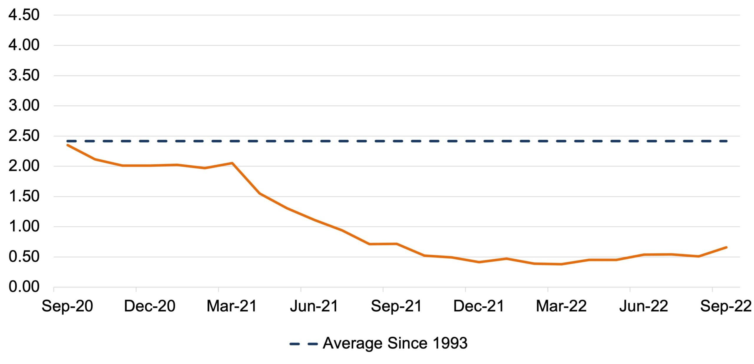 According to the NADA, ground and transit inventory totaled 1.54 million units at the end of October 2022. The industry has not seen this magnitude of inventory flow since May 2021, which is right around when the industry’s inventory crunch began to take hold. In our opinion, we should hesitate before assuming that vehicle availability has fully recovered, as the September 2022 industry inventory-to-sales ratio (0.64x) remains well below its long-run average (2.4x). We will get a better idea of this month’s inventory levels when October 2022 I/S ratio data is released next month. Nevertheless, improved inventory balances are a good sign for consumers and dealers alike, as it seems like it has been ages since the days of full car lots and numerous options for consumers to test drive and choose from.