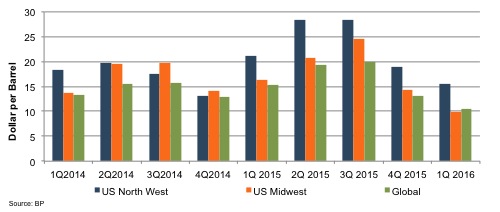 The refiner marker margin (RMM) is a general indicator, calculated quarterly by BP, which shows the estimated profit refiners earn from refining one barrel of crude. Refiners’ margins increased dramatically in the second and third quarters of 2015 as the price of crude fell and the price of refined petroleum products remained high. Refiners in the U.S. were on average making $25 per barrel of oil, while global profit margins barely reached $20 per barrel.