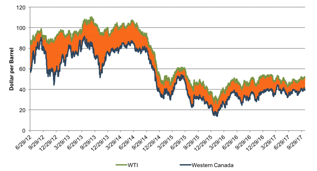 The price differential between light, sweet crude and heavy, sour crude has been shrinking since the fall of oil prices in 2014. From a max differential of $42.50 in December 2012, the differential has fallen to an average of $11 over the last month.