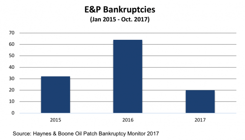 A panel discussion on navigating the distressed oil and gas world was thought-provoking. The panel participants provided an overview of the 2017 bankruptcy environment as well as where we are headed in 2018 (including statistics and commentary). From 2015 through October 2017, there were a total of 116 U.S. producer bankruptcies representing $80 billion of secured and unsecured debt.