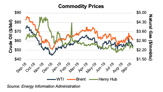 However, the price reaction was short-lived, as the Saudis were able to bring 2 million bbl/d of production back online within days, with the remainder expected to be back online within weeks. WTI and Brent prices ended September lower than on the day prior to the attack.