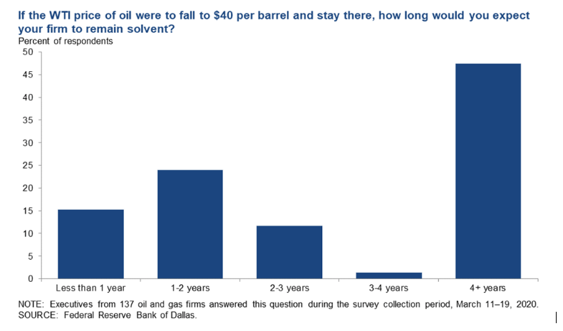 After the last recession, some PUDs faced a similar, yet more modest, decline in prices. In fact, nearly half the companies surveyed this spring by the Federal Reserve Bank of Dallas reported only being able to be solvent for 2-3 years at the most under these values. We have already seen some declare bankruptcy.