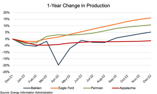 Appalachian production held steady in 2022 despite historically high commodity price volatility driven by the Russian-Ukraine war, the sabotage of the Nord Stream pipelines, and rising LNG exports to Europe to stave-off potential winter heating shortages. The Q4 Appalachian rig count is at a level beyond that needed for production volume maintenance, so there would seem to be at least some potential for Henry Hub price reductions going into 2023. However, the demand for new natural gas supplies to Europe provides a countervailing wind to any potential downward movement in natural gas prices. In the end, the natural gas markets seem to be in the midst of a series of events that promise continued supply and demand shifts with no certainty as to where the market will go in 2023.