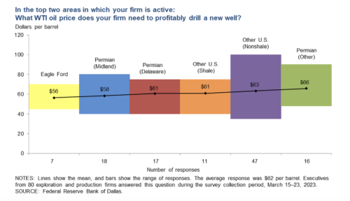 Costs rose for the ninth quarter in a row with employment costs continuing to drift up. However, amid these rises, most producing regions can still offer profitable new wells at around today’s $80 WTI per barrel. Consider the chart below: