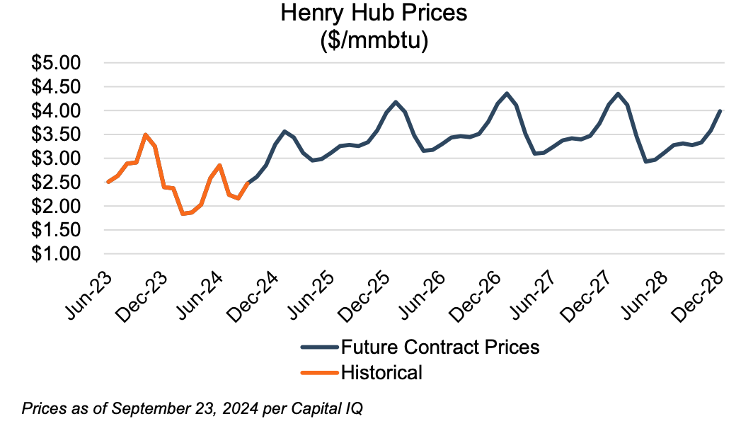 Appalachia’s production has been relatively flat this year, however some of this has been the result of resource management as opposed to resource scarcity. These companies do not have the geographic advantage of being close to the Gulf Coast where almost all of LNG capacity growth has been and will continue to be developed. However, the recent opening of the Mountain Valley Pipeline is helping to relieve some of the constraints. In addition, although LNG permits have been delayed to the consternation of some and applause of others, pre-existing development projects should double export capacity over the next four years. LNG makes natural gas more tradeable worldwide. The world is adding millions of new appliances, computers and electric cars every year. China and India continue to grow. Appalachian companies will be able to participate in some of that, although other basins (Permian, Haynesville, and Eagle Ford) are more proximate.