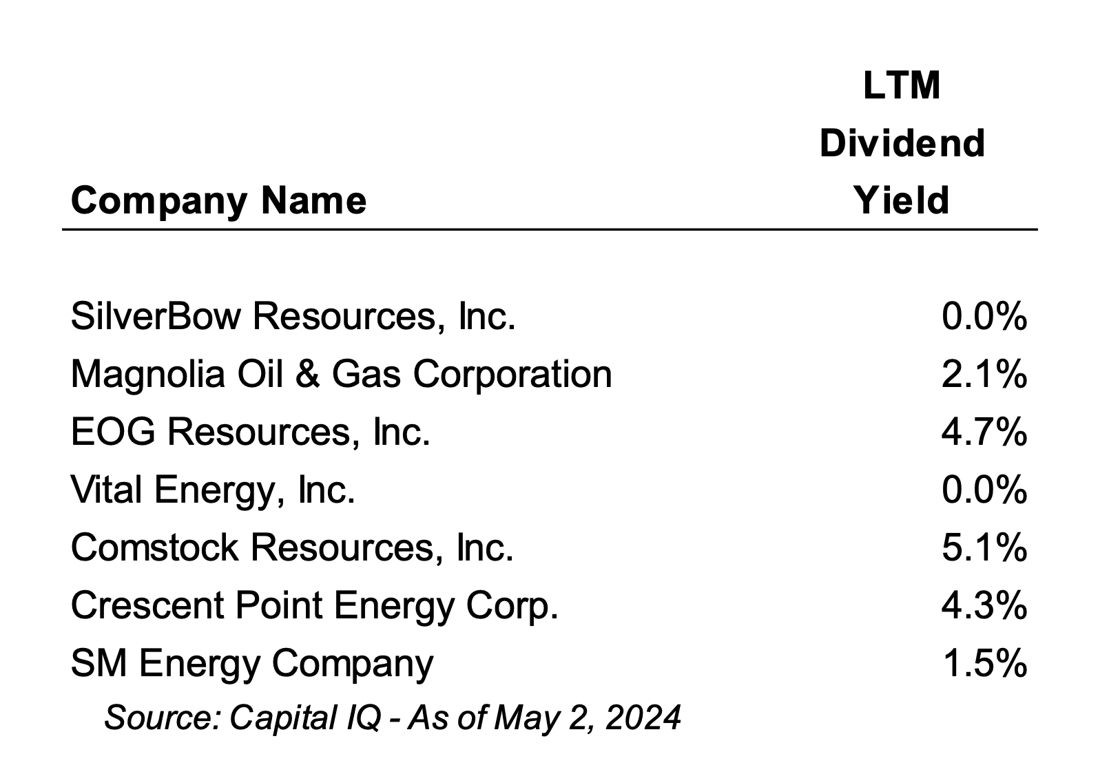 Dividends have been a big trend in the oil and gas industry. Investors have pined for oil and gas companies to pay dividends for many years now. Growth and reinvestment have been curtailed in favor of direct shareholder returns in the form of stock buybacks and more importantly, dividends. SilverBow does not pay a dividend. Most publicly traded peers do.