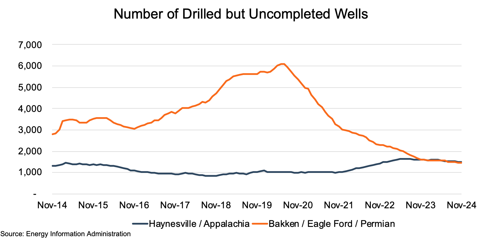 All these factors, and I’m sure more that I haven’t covered here, have led to a softer oil price market for 2025. EIA, Dallas Fed Survey, and NYMEX futures all currently estimate prices to be in the low 70’s for this year. Estimates can vary of course, and oil prices are so sensitive to geopolitical events that these estimates could be out the window in short order. However, the supply surplus and tempered global demand have put the market in a relatively weak pricing position.