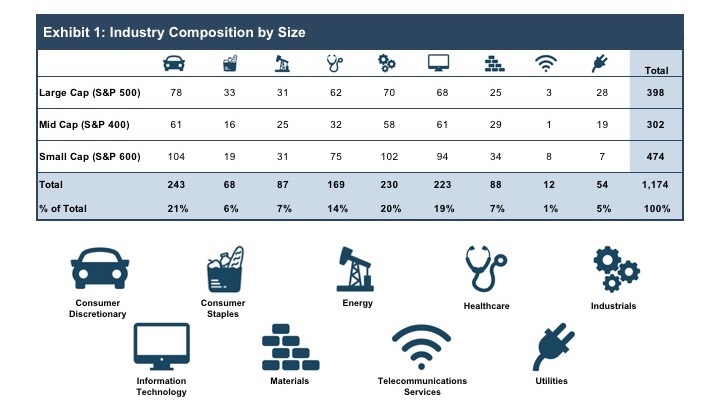Exhibit 1 summarizes the composition of the data set with respect to both industry and size.