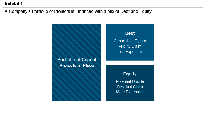 As noted in Exhibit 1, lenders are entitled to a contractual return and have a priority claim on the company’s assets. Shareholders, in contrast, benefit from the potential upside of growth opportunities, but have only a residual claim on the company’s assets. Since return follows risk, the expected return for debt holders is lower than that for equity holders.