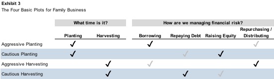 You can discern the basic plot of your family business by answering two questions. First, what time is it? Second, how are we managing financial risk?