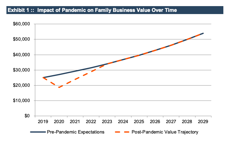 Exhibit 1 depicts the expected value trajectory for the family business both before and after the pandemic.