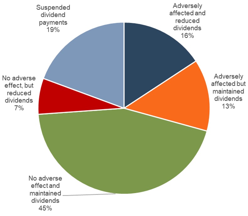 - Nearly 20% of all survey respondents reported suspending dividends altogether because of the pandemic. Given the significance of dividend payments to family shareholders, the decision to suspend dividends reveals the gravity of the threat the pandemic posed to some family businesses. Deciding when and how to reintroduce dividend payments will be a significant challenge for these families.