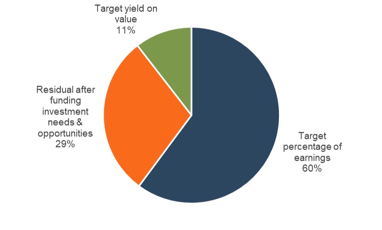 Nearly 30% of dividend policies prioritize the investment needs of the business and treat dividends as a residual amount after attractive investment opportunities have been funded. Finally, a smaller minority of respondents prioritize shareholder returns in the form of establishing a target dividend yield (generally on the order of 2% to 4% of value).