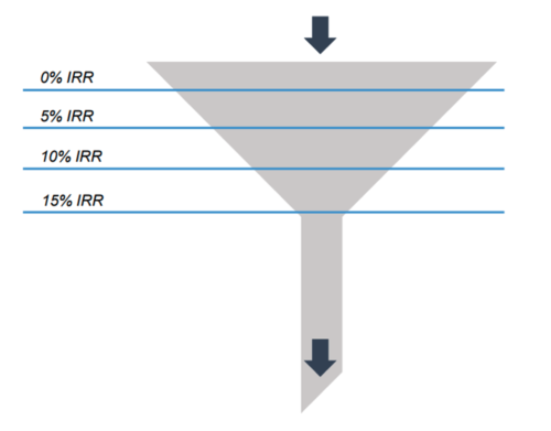 The supply of capital projects dwindles as the level of expected return increases. In other words, there are a lot more capital projects that are expected to earn a 5% return than a 15% return.