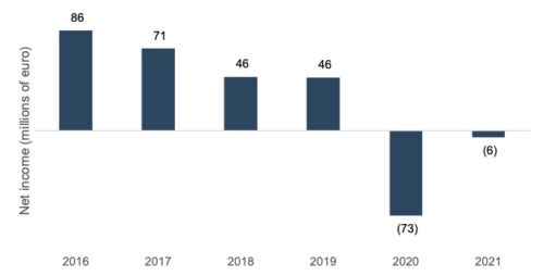 Earnings have suffered as well, with the company reporting net losses in 2020 and 2021.