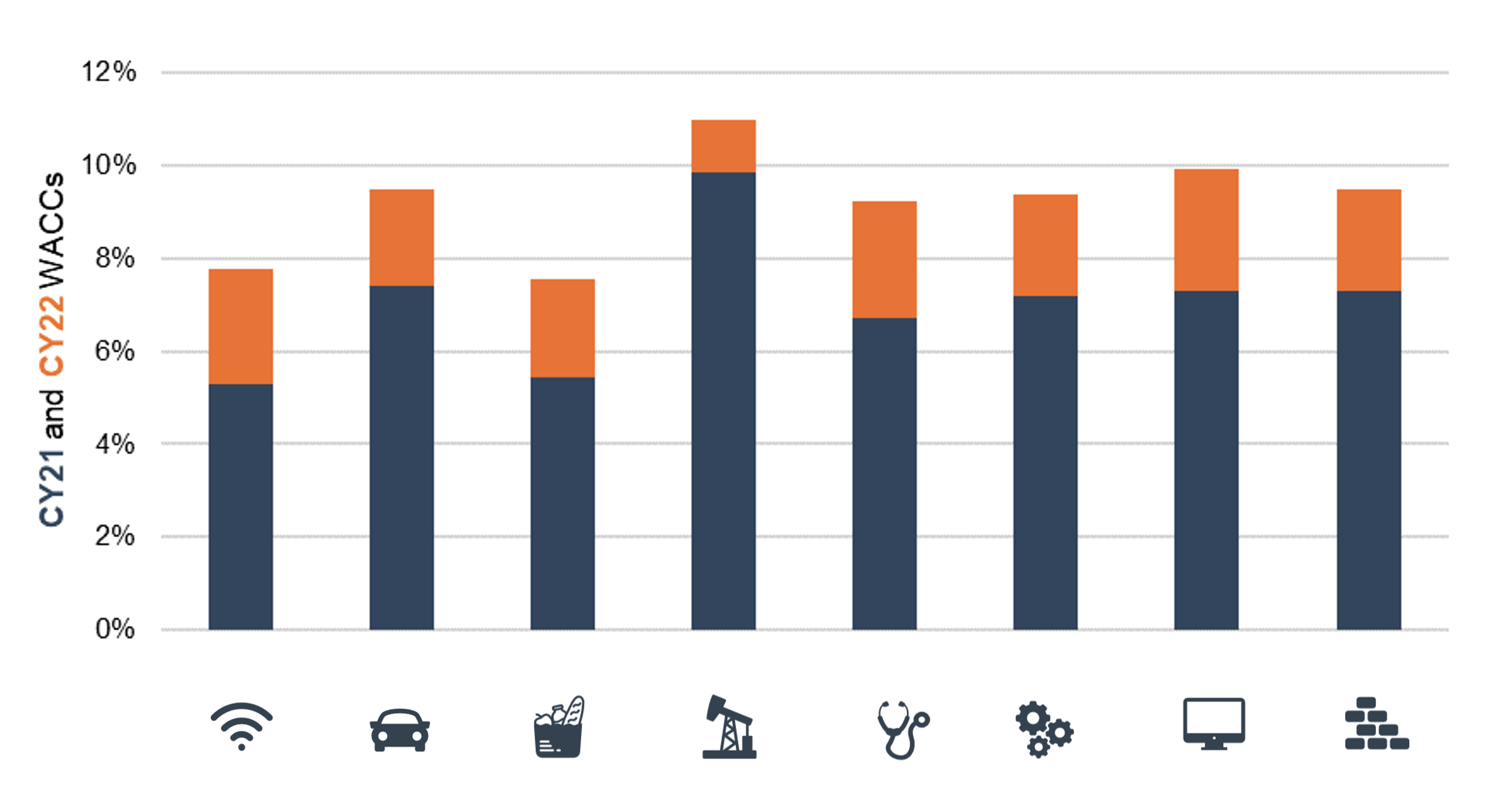 The weighted average cost of capital is the blended return expectation of lenders and shareholders. We calculate the cost of each capital source and the weighted average regarding the market value of total capital. WACCs are generally higher for smaller and perceived riskier companies.