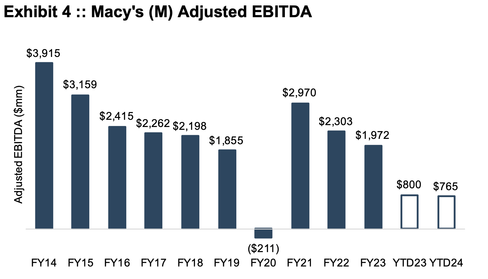 Sure enough, Nordstrom’s ongoing struggles are mirrored in the results for competitor Macy’s over the same period (Exhibit 4).