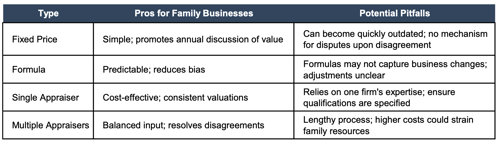 Valuation Process Agreements: These rely on appraisers for a fair market valuation at the time of a trigger event. There are two subtypes: