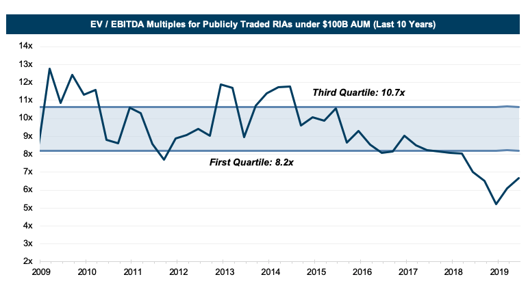 Historically, most publicly traded RIAs with under $100 billion in AUM have traded in the 8-11x range.