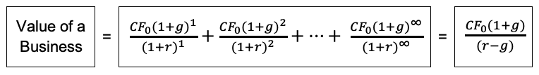 The simplest method used under the income approach is a single period capitalization model.  Ultimately, this method is an algebraic simplification of its more detailed DCF counterpart.  As opposed to a detailed projection of future cash flow, a base level of annual net cash flow and a sustainable growth rate are determined.