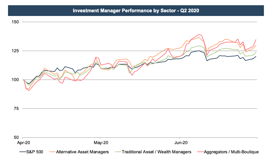 Last quarter showed the positive side to leverage as aggregators bested all other classes of RIAs during generally favorable market conditions in April and May. Other investment managers also fared well since collective AUM and ongoing revenue recovered with the market over the quarter. The primary driver behind the increase was the increase in the market itself, as most of these businesses are primarily invested in equities, and the S&P gained about 20% over the quarter.