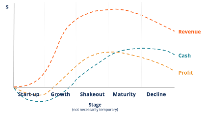 The lifecycle of an industry is often characterized by the following phases: start-up, growth, shakeout, maturity, and decline.