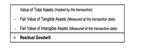 A purchase price allocation is just that—the purchase price paid for the acquired business is allocated to the acquired tangible and separately-identifiable intangible assets. As noted in the following figure, the acquired assets are measured at fair value. The excess of the purchase price over the identified tangible and intangible assets is referred to as goodwill.