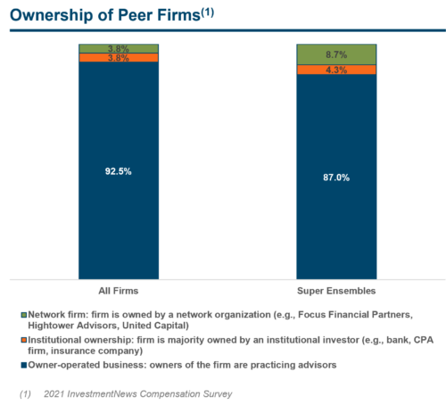 As a result, most investment management firms offer their key employees some form of equity compensation to align their interests with shareholders and incentivize them to continue growing the business. Equity comp can also be a differentiator that allows some RIAs to recruit top talent from other investment management firms that don’t offer any sort of stock consideration to their employees. Equity comp has become more common during the Great Resignation and is part of the reason we’re seeing so much turnover in the industry now.