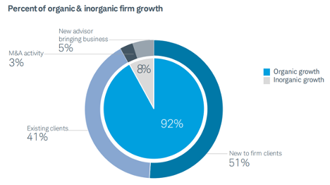 Despite all of the media attention given to consolidation activity in the wealth management sector, it’s noteworthy that the advisors surveyed by Schwab saw ample opportunity to grow their firms organically, with less than 10% of expected growth coming from recruiting or M&A.