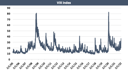 The VIX, which calculates the expected volatility of the U.S. Stock market, hit a new all-time high on March 16,2020, of 82.69. It gradually declined until Russia invaded Ukraine several weeks ago and has ticked back up ever since.