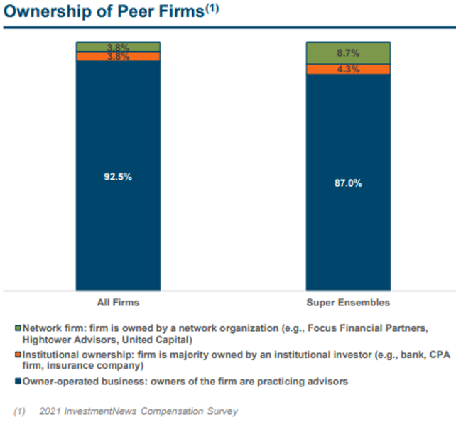 As a result, most investment management firms offer their key employees some form of equity compensation to align their interests with shareholders and incentivize them to continue growing the business. Equity comp can also be a differentiator that allows some RIAs to recruit top talent from other investment management firms that don’t offer any sort of stock consideration to their employees. Equity comp has become more common during the Great Resignation and is part of the reason we saw so much turnover following the pandemic.