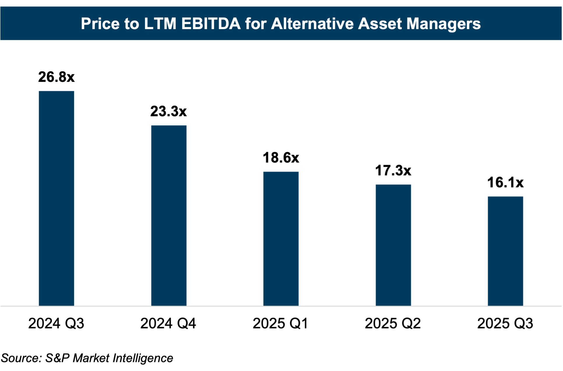 Persistent high interest rates and questions about the sustainability of elevated valuation multiples have contributed to weaker market sentiment toward alternative asset managers.