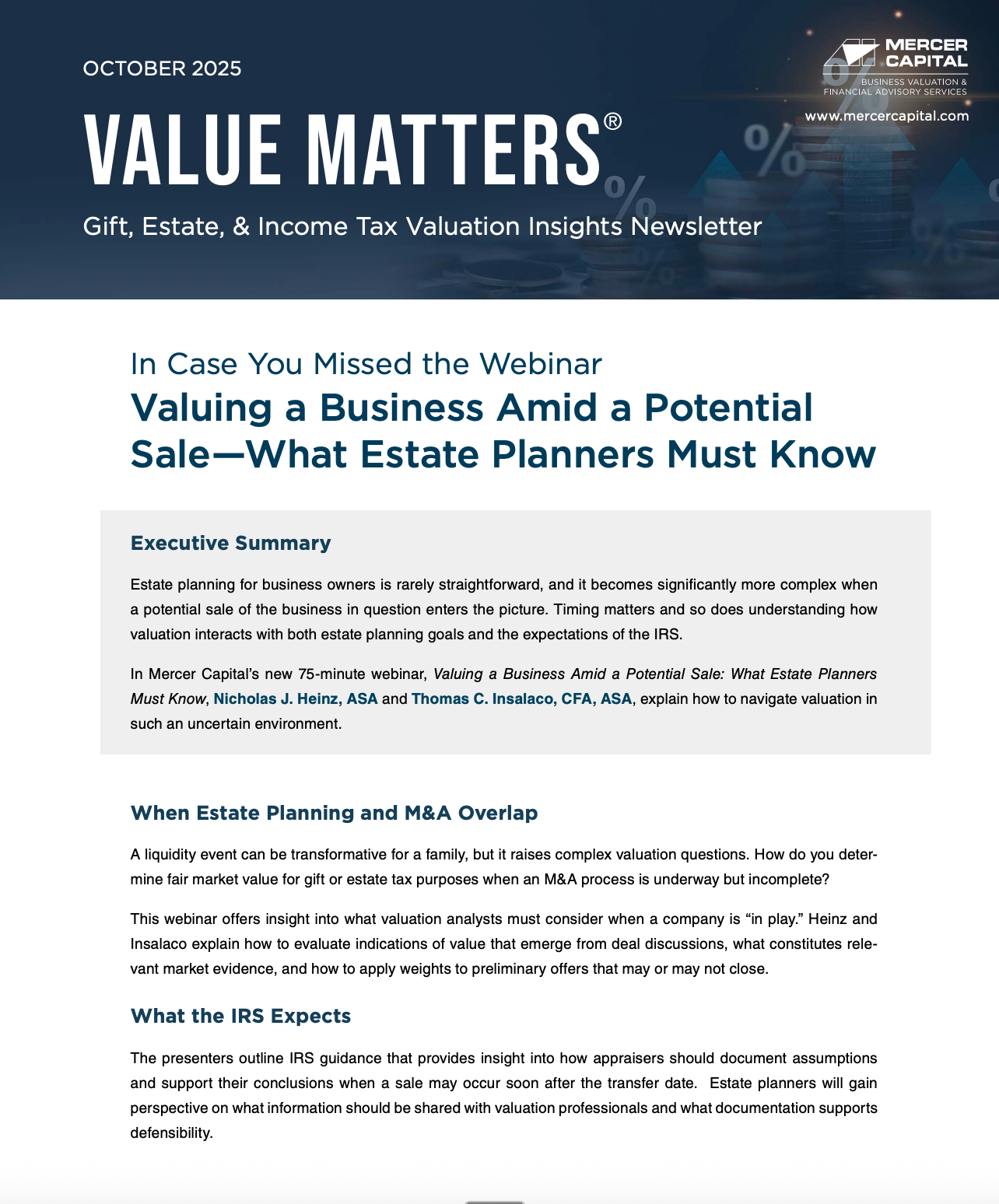 In Case You Missed the Webinar: Valuing a Business Amid a Potential Sale- What Estate Planners Must Know
