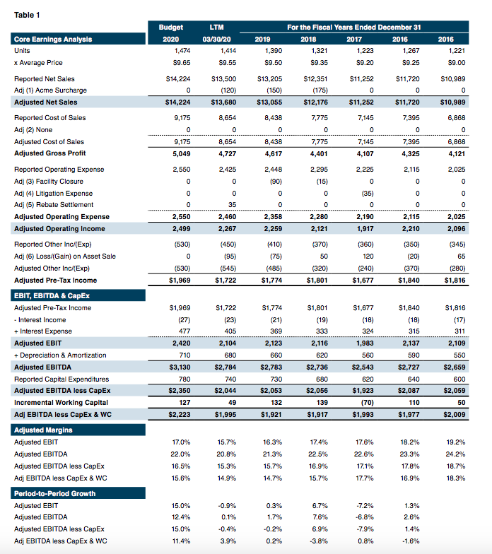 Table 1 provides a sample overview of the template we use at Mercer Capital. The process is not intended to create an alternate reality; rather, it is designed to shed light on core trends about where the company has been and where it may be headed. Adjustments are intended to strip-out non-recurring items and items that are not related to the operations of the business.