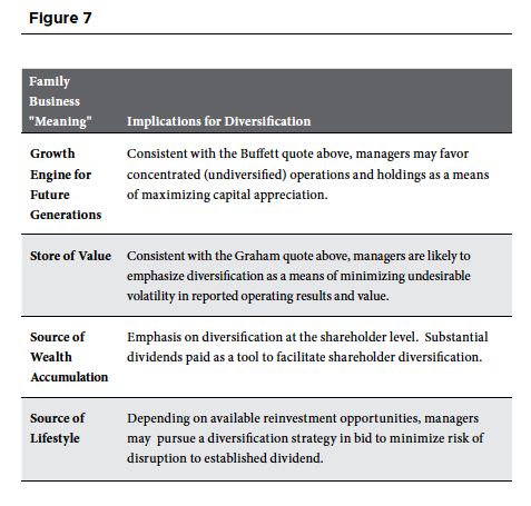 In Chapter 3, we discussed about the four basic “meanings” that a family business can have. What the business “means” to the family has significant implications for not only dividend and reinvestment policy, but also the role of diversification in the business.