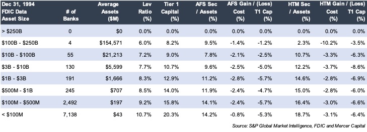 Banks are better capitalized with average leverage and tier one capital ratios of 10.6% and 17.0% as of March 31, 2022 compared to 8.3% and 12.9% as of year-end 1994.