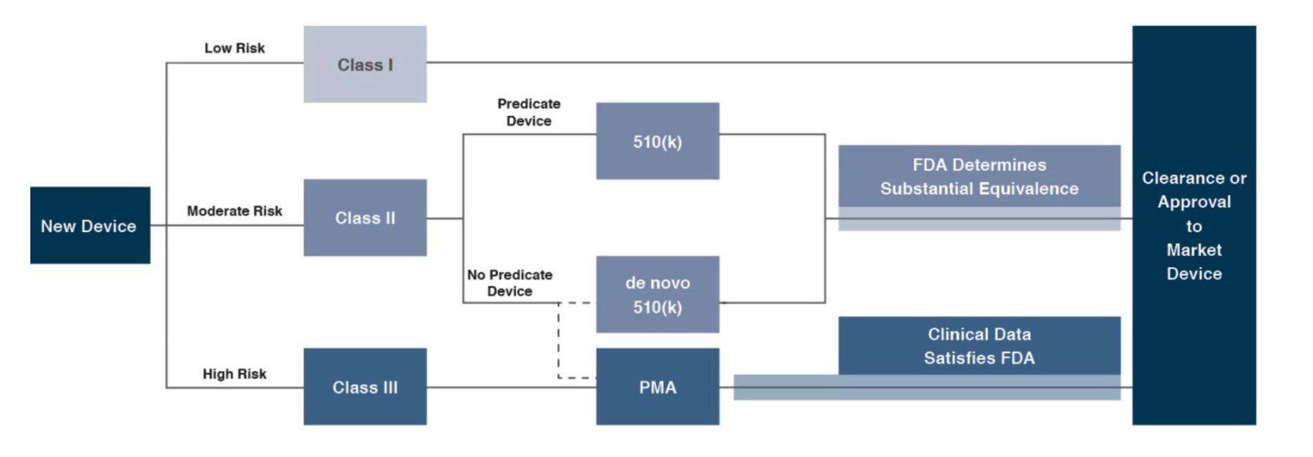 In the U.S., the FDA generally oversees the implementation of the second set of regulations.Some relatively simple devices deemed to pose low risk are exempt from the FDA’s clearance requirement and can be marketed in the US without prior authorization.For the remaining devices, commercial distribution requires marketing authorization from the FDA, which comes in primarily two flavors.