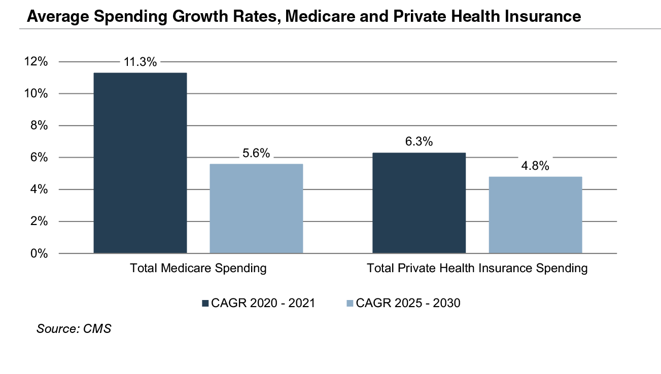 The Patient Protection and Affordable Care Act (“ACA”) of 2010 incorporated changes that are expected to constrain annual growth in Medicare spending over the next several decades, including reductions in Medicare payments to plans and providers, increased revenues, and new delivery system reforms that aim to improve efficiency and quality of patient care and reduce costs.While political debate centered around altering the ACA has been a continuous fixture in American politics since its passing, it is unlikely that material reform to the ACA occurs in the near future under the Biden Administration.Total Medicare spending is projected to grow at 5.6% annually between 2025 and 2030, compared to year over year growth of 11.3% in 2021 and 3.5% in 2020.